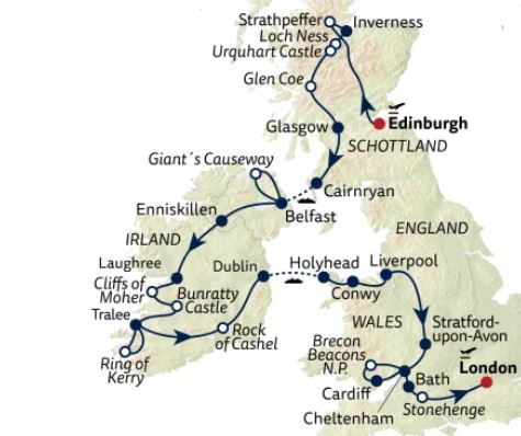 Erleben Sie die Britischen Inseln in all ihrer Vielfalt – von den majestätischen Highlands in Schottland über die wilden Küsten Irlands bis hin zu den charmanten Städten in Wales und England.