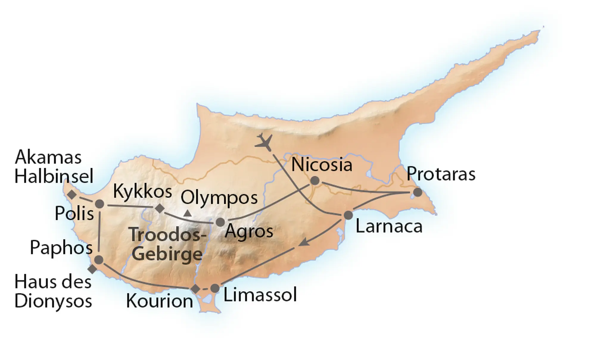 Die Namen der Unterkünfte erhalten Sie mit der Reisebestätigung.