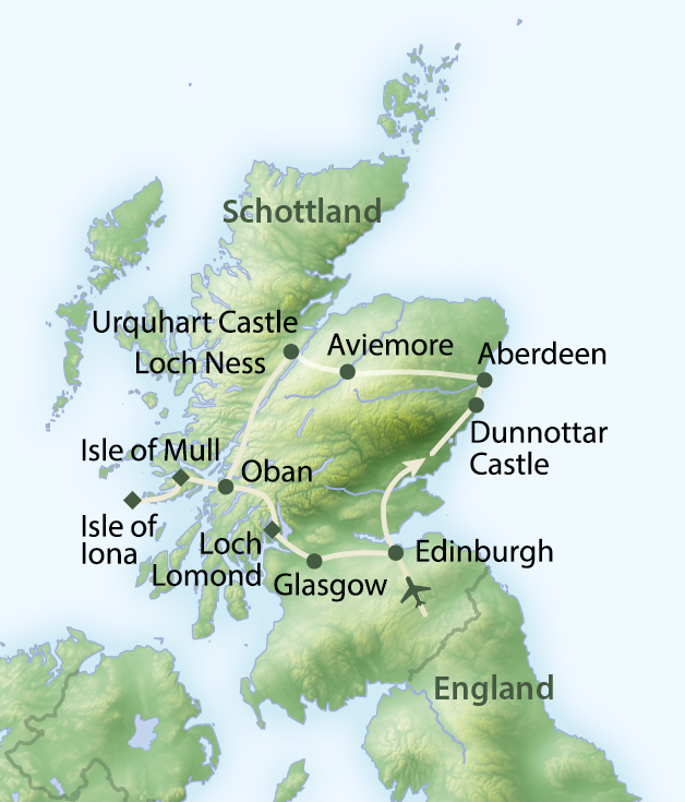 • Zubucherreise; Internationale Gruppe mit Deutsch sprechender Reiseleitung ab/bis Edinburgh (Tage 2 bis 7)