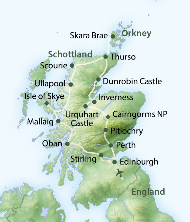 • fakultativer Tagesausflug nach Orkney (Fähre nicht inbegriffen)