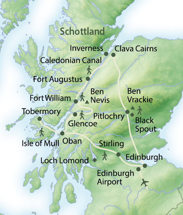• Transfer zum Flughafen Edinburgh (Flüge ab 10.00 Uhr) am Tag 11
